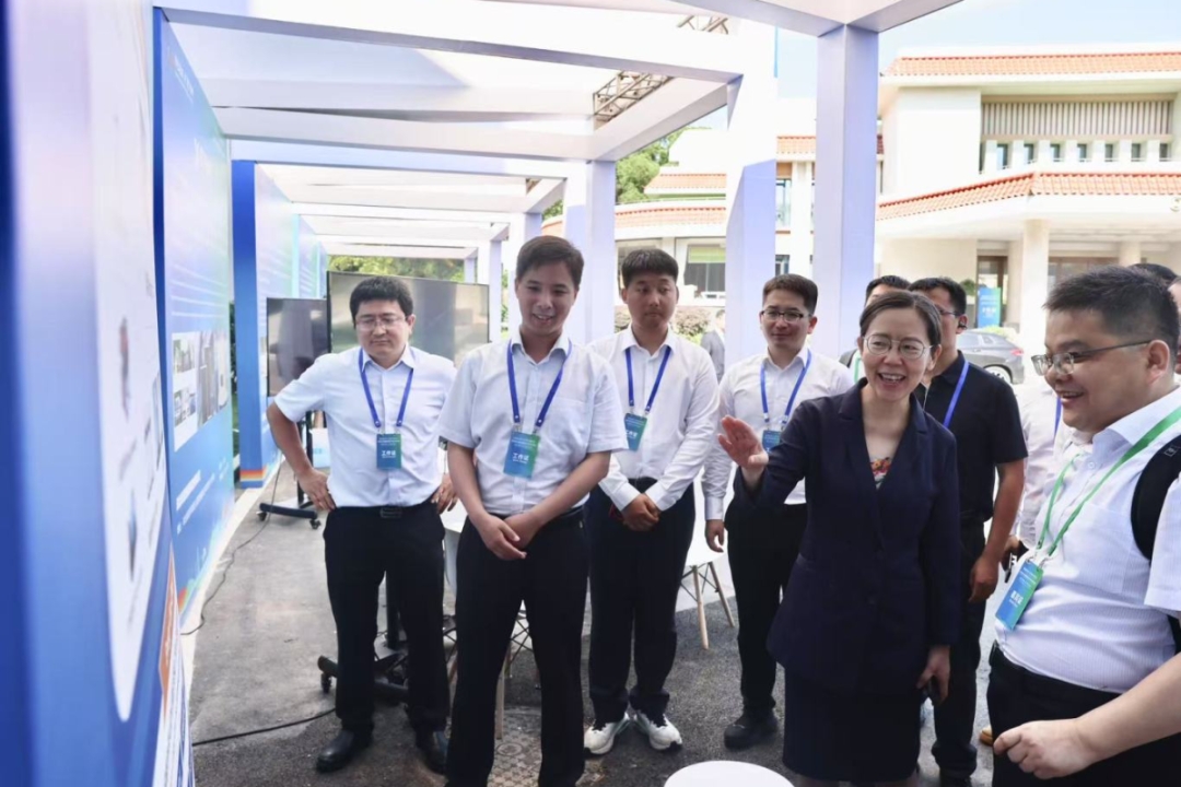 中非電力與新能源發(fā)展合作交流對接活動上,在長三角國家技術(shù)創(chuàng)新中心用能互聯(lián)網(wǎng)研究所的展陳位聽取工作人員講解