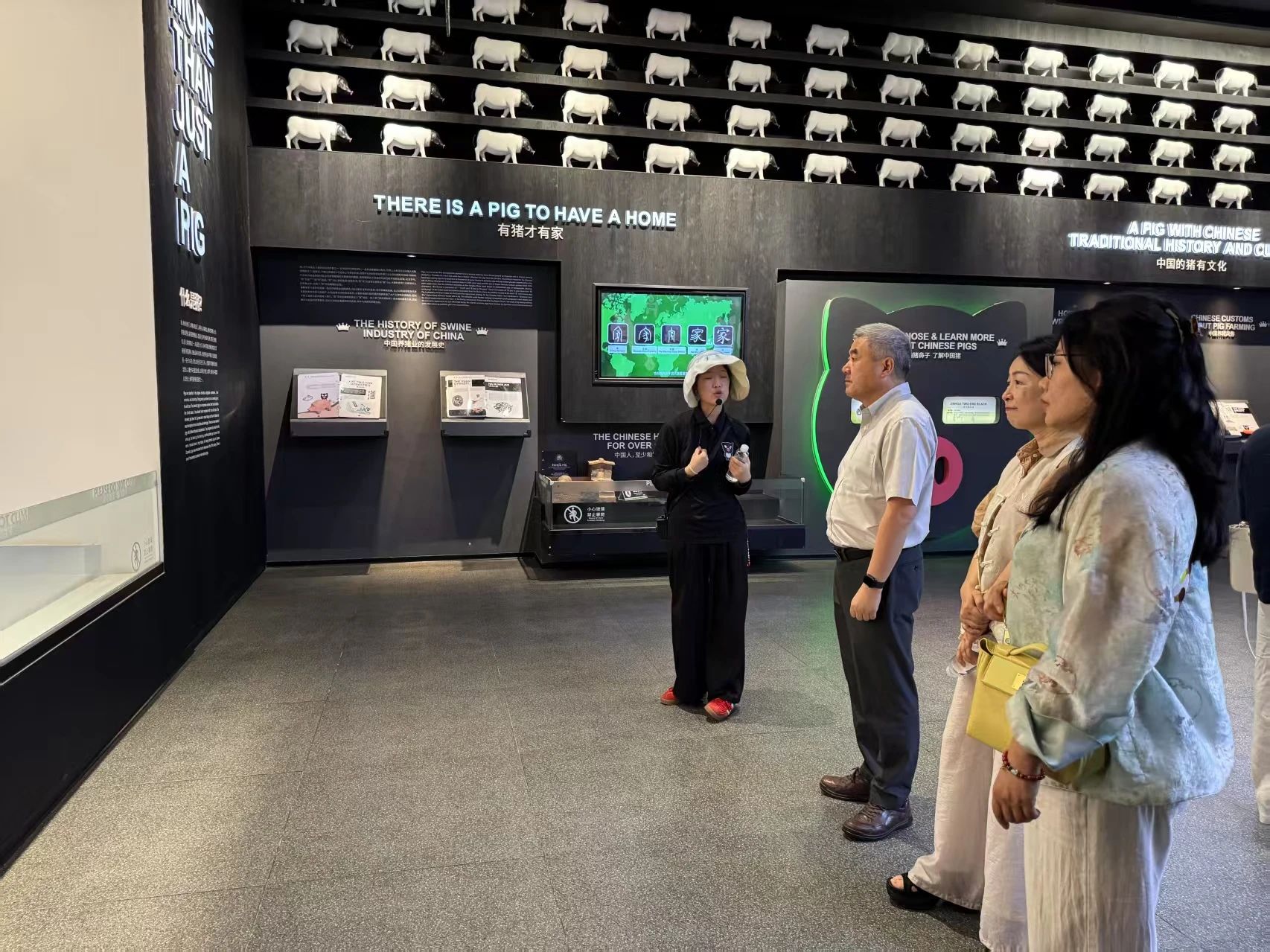 在熊貓豬豬兩頭烏國際牧場,企業(yè)負(fù)責(zé)人向調(diào)研組展示了金華兩頭烏的智能化養(yǎng)殖中心,詳細(xì)介紹了牧場集合茶葉、養(yǎng)殖、旅游等內(nèi)容的農(nóng)文旅一體化發(fā)展模式。來到金字火腿有限公司,調(diào)研組詳細(xì)了解金華火腿的發(fā)展歷史、制作流程和近年來的生產(chǎn)工藝數(shù)字化改造和新產(chǎn)品開發(fā)情況。