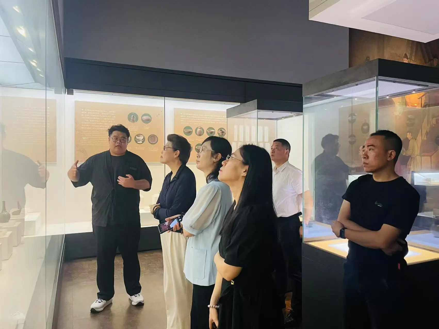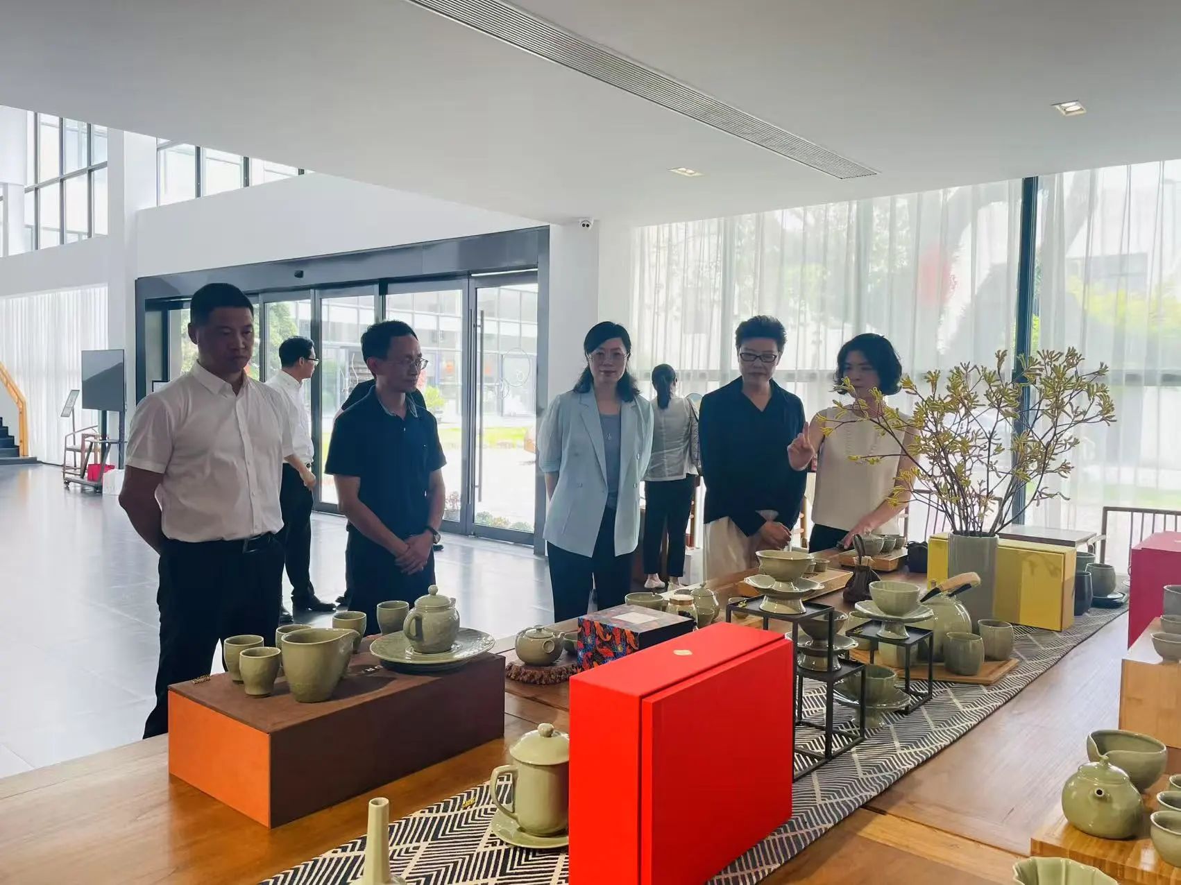 調(diào)研組一行參觀上林湖越窯博物館,仔細(xì)觀摩越窯青瓷歷史文物,聆聽講解員對越窯青瓷歷史沿革、文化內(nèi)涵的介紹。隨后前往越窯青瓷有限公司(上林瓷苑),了解青瓷制作流程、傳統(tǒng)技藝傳承和產(chǎn)品拓展創(chuàng)新情況。