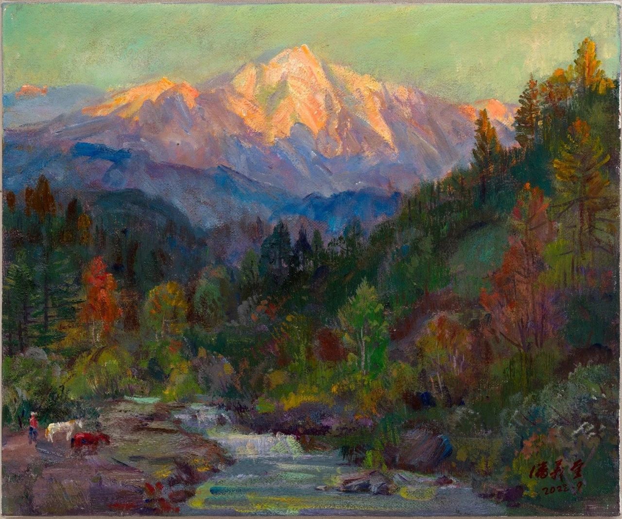 《金山下的姑娘》布面油畫 50x60cm 2022