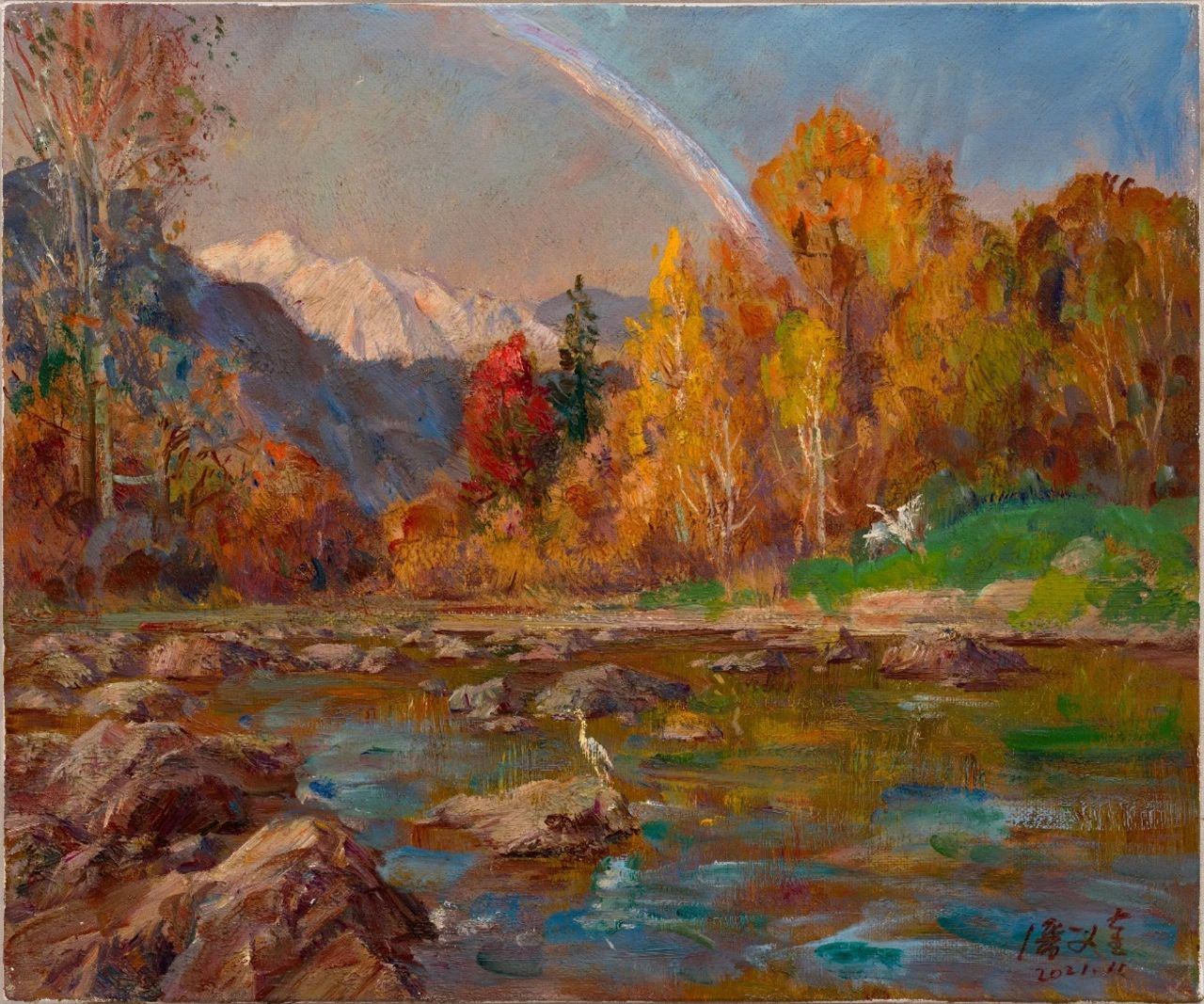 《秋雨后的彩虹》布面油畫 50x60cm 2021