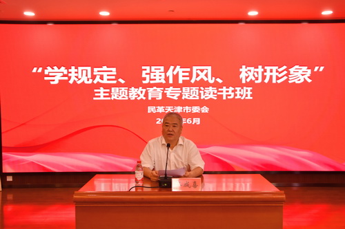 6月27日,為深入學(xué)習(xí)宣傳貫徹落實(shí)中共中央八項(xiàng)規(guī)定精神,推進(jìn)作風(fēng)建設(shè)常態(tài)化長效化,樹立中國特色社會主義參政黨的良好形象,民革天津市委會在團(tuán)結(jié)大廈舉辦“學(xué)規(guī)定、強(qiáng)作風(fēng)、樹形象”主題教育讀書班。天津市政協(xié)副主席、民革天津市委會主委齊成喜,副主委杜洪印、王紅梅、孫曉光、耿延候、王遵來出席讀書班,秘書長周潮洪主持讀書班。