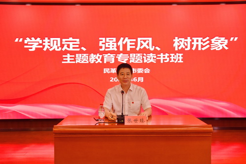 讀書班上,齊成喜就市委會深入開展“學(xué)規(guī)定、強(qiáng)作風(fēng)、樹形象”主題教育提出三點(diǎn)要求:一是要圍繞加強(qiáng)思想政治建設(shè)開展好主題教育。這次主題教育要凸顯思想政治建設(shè)的根本性地位,按照民革章程要求,不斷強(qiáng)化思想政治引領(lǐng),筑牢信仰之基、補(bǔ)足精神之鈣、把穩(wěn)思想之舵,從思想深處提高認(rèn)識、轉(zhuǎn)變作風(fēng),與民革各項(xiàng)工作緊密結(jié)合、相互促進(jìn)。二是要扎實(shí)履職開展好主題教育。今年是民革履職能力建設(shè)年,要深入貫徹落實(shí)參政黨建設(shè)三個文件和五個紀(jì)要精神,以提高市、區(qū)級組織新班子的履職能力為工作重點(diǎn),堅(jiān)持發(fā)揮社會和法治、祖統(tǒng)、“三農(nóng)”領(lǐng)域的特色和優(yōu)勢,積極推進(jìn)履職能力建設(shè)。三是要做好專項(xiàng)工作開展好主題教育。開展好“講講我們的優(yōu)良傳統(tǒng)”知行分享會、參觀廉政教育基地、“學(xué)思踐悟·民革青年說”學(xué)習(xí)分享交流會等多項(xiàng)活動,持續(xù)高標(biāo)準(zhǔn)、嚴(yán)要求開展好主題教育,確保取得實(shí)效,努力建設(shè)高水平新時(shí)代中國特色社會主義參政黨。