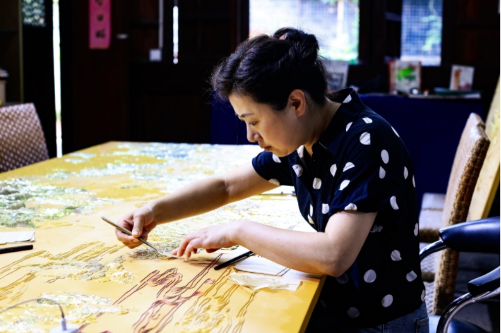 李明霽的父親李光昭是寧波泥金彩漆代表性傳承人。耳濡目染下,李明霽打小就開始接觸這項技藝,經(jīng)常學(xué)著父親的樣子,擺弄、拿捏家中的漆泥,熱愛非遺的“種子”也悄悄種進(jìn)了她的心底,慢慢生根發(fā)芽。