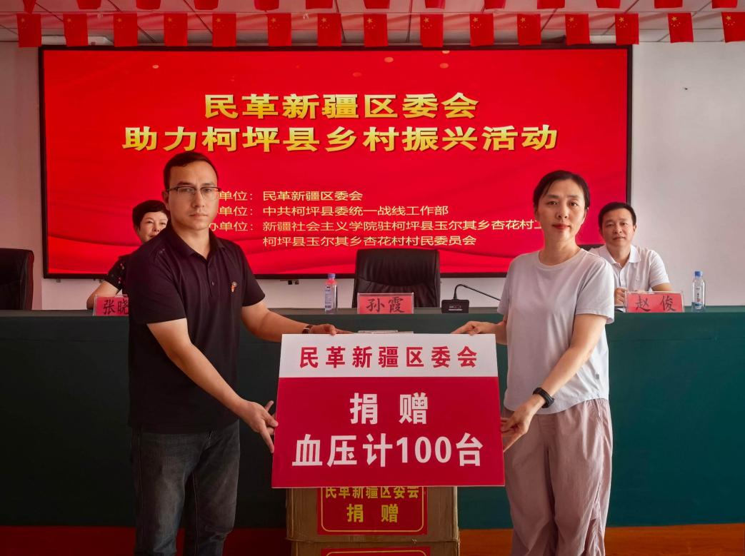 7月22日,民革新疆區(qū)委會(huì)赴阿克蘇地區(qū)柯坪縣玉爾其鄉(xiāng)杏花村開展助力鄉(xiāng)村振興社會(huì)服務(wù),向村民捐贈(zèng)100臺(tái)電子血壓計(jì)。民革新疆區(qū)委會(huì)專職副主委孫霞、民革阿克蘇市委會(huì)主委張曉嵐、新疆社會(huì)主義學(xué)院駐杏花村工作隊(duì)隊(duì)長張林鵬參加捐贈(zèng)儀式。中共柯坪縣委常委、統(tǒng)戰(zhàn)部部長趙俊致歡迎詞,杏花村90余名村民參加活動(dòng)。