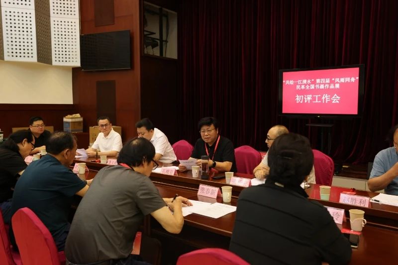 7月25日,“共繪一江清水”第四屆“風(fēng)雨同舟”民革全國書畫作品展初評工作會議在民革中央機(jī)關(guān)舉行。民革中央副主席兼秘書長李惠東出席會議。來自全國的11位藝術(shù)家按照“公平、公正、透明”的原則,從1473件社會投稿作品中評出初評入圍作品252件(不含特邀及主題創(chuàng)作)。
