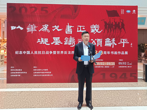 9月2日上午,由民革云南省委會(huì)、云南省黃埔軍校同學(xué)會(huì)、云南省圖書館聯(lián)合主辦的“以筆為戈書正義 凝墨鑄魂頌和平——紀(jì)念中國(guó)人民抗日戰(zhàn)爭(zhēng)暨世界反法西斯戰(zhàn)爭(zhēng)勝利80周年書畫作品展”在云南省圖書館開幕,并持續(xù)展出至9月25日。