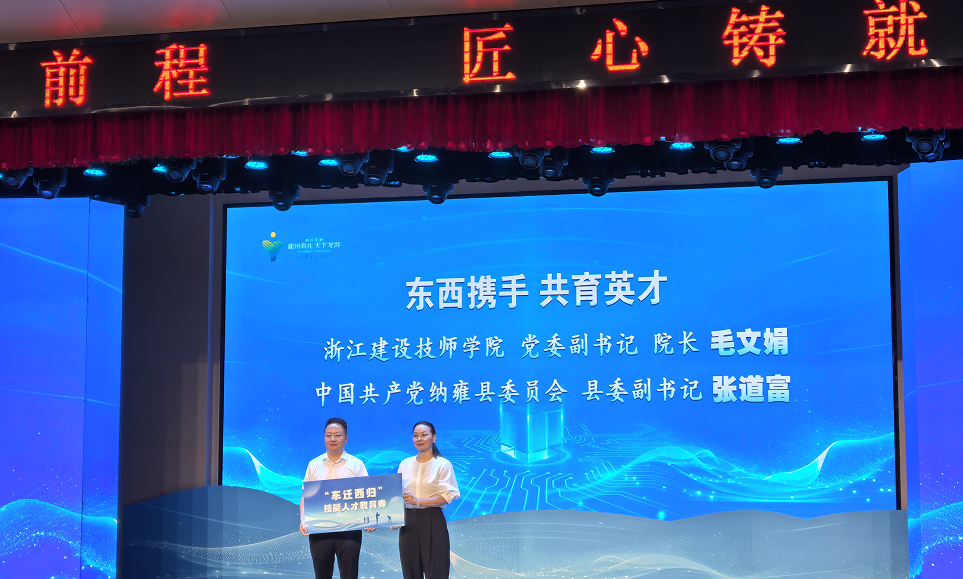 發(fā)布會(huì)上,浙江建設(shè)技師學(xué)院向貴州省納雍縣贈(zèng)送“東遷西歸”技能人才教育券。首批30名納雍籍學(xué)生已入讀龍游校區(qū),享受學(xué)費(fèi)、住宿費(fèi)減免等政策支持。該舉措是民革衢州市委會(huì)積極參與東西部協(xié)作、推動(dòng)“東遷西歸”技能人才培養(yǎng)模式的重要實(shí)踐,旨在依托浙江優(yōu)質(zhì)職業(yè)教育資源,幫助納雍學(xué)子提升技能、實(shí)現(xiàn)就業(yè)致富。