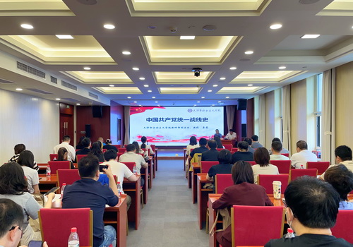 培訓班邀請?zhí)旖蚴猩鐣髁x學院教研部副主任李雯作《中國共產黨統(tǒng)一戰(zhàn)線史》專題講座,通過豐富的歷史資料詳細介紹了中國共產黨領導的統(tǒng)一戰(zhàn)線的發(fā)展歷程,充分闡述了習近平總書記關于堅持好發(fā)展好完善好中國新型政黨制度重要論述的深刻內涵,明確了新時期多黨合作制度的新要求以及各民主黨派的歷史使命和歷史責任。