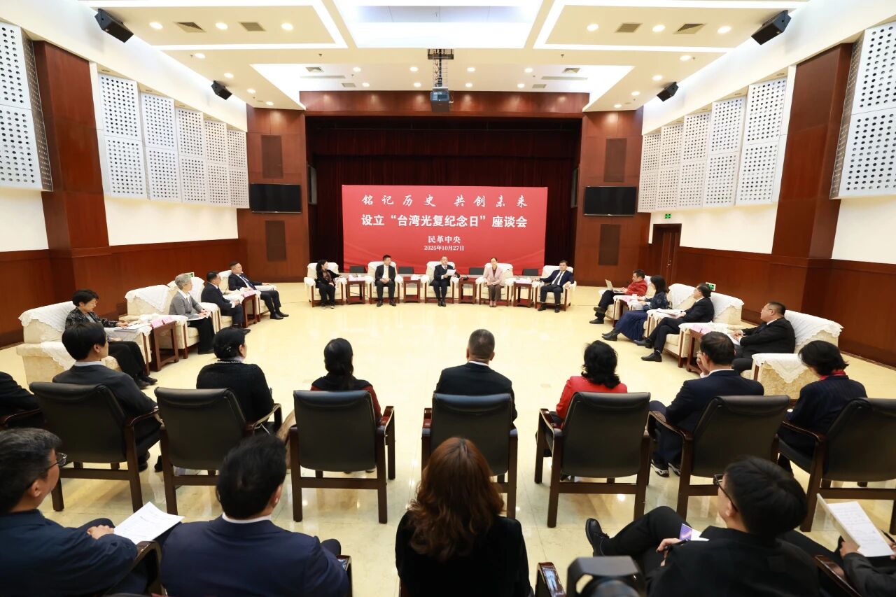 10月27日,民革中央在京舉辦“銘記歷史 共創(chuàng)未來(lái)——設(shè)立‘臺(tái)灣光復(fù)紀(jì)念日’”座談會(huì)。全國(guó)人大常委會(huì)副委員長(zhǎng)、民革中央主席鄭建邦出席座談會(huì)并講話。座談會(huì)由民革中央副主席陳星鶯主持。
