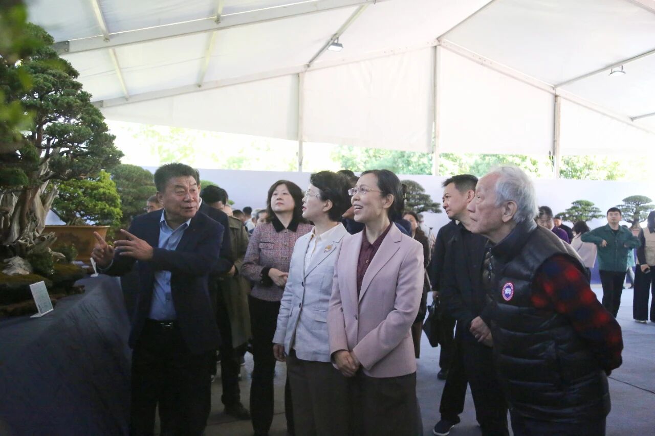 開幕式后,與會領(lǐng)導(dǎo)嘉賓前往盆景藝術(shù)展區(qū),參觀兩岸盆景藝術(shù)家?guī)淼?00余件匠心之作。