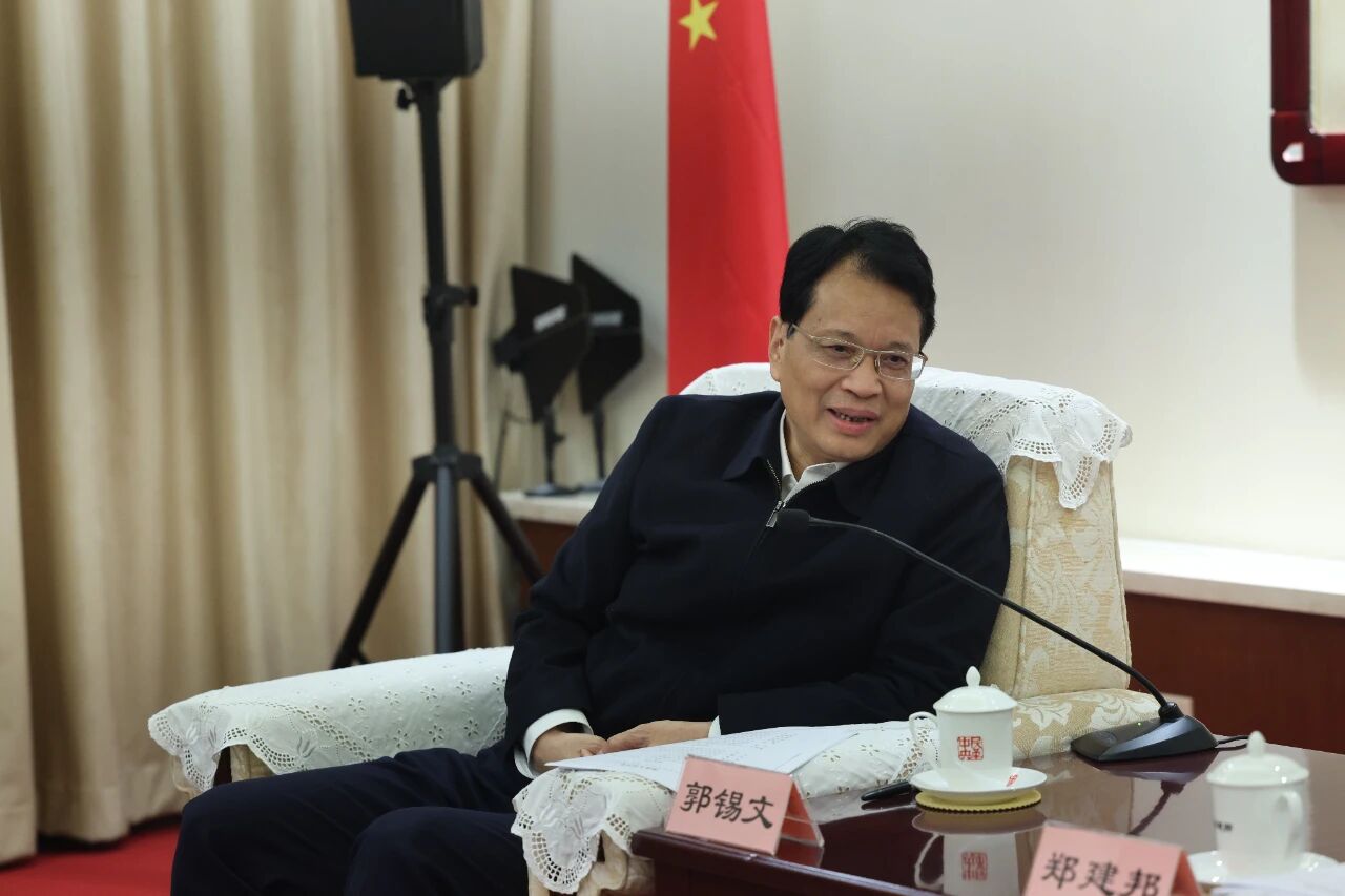 11月12日,全國人大常委會副委員長、民革中央主席鄭建邦在民革中央機(jī)關(guān)會見來訪的中共貴州省委常委、畢節(jié)市委書記郭錫文一行。民革中央副主席兼秘書長李惠東參加會見。
